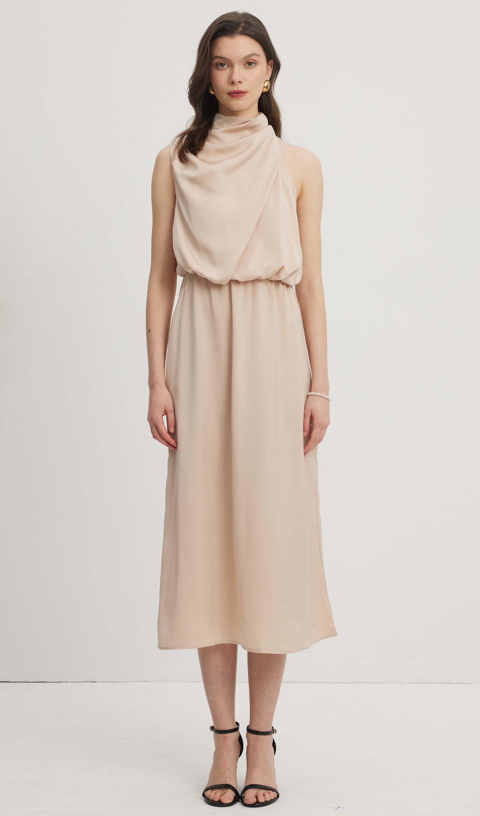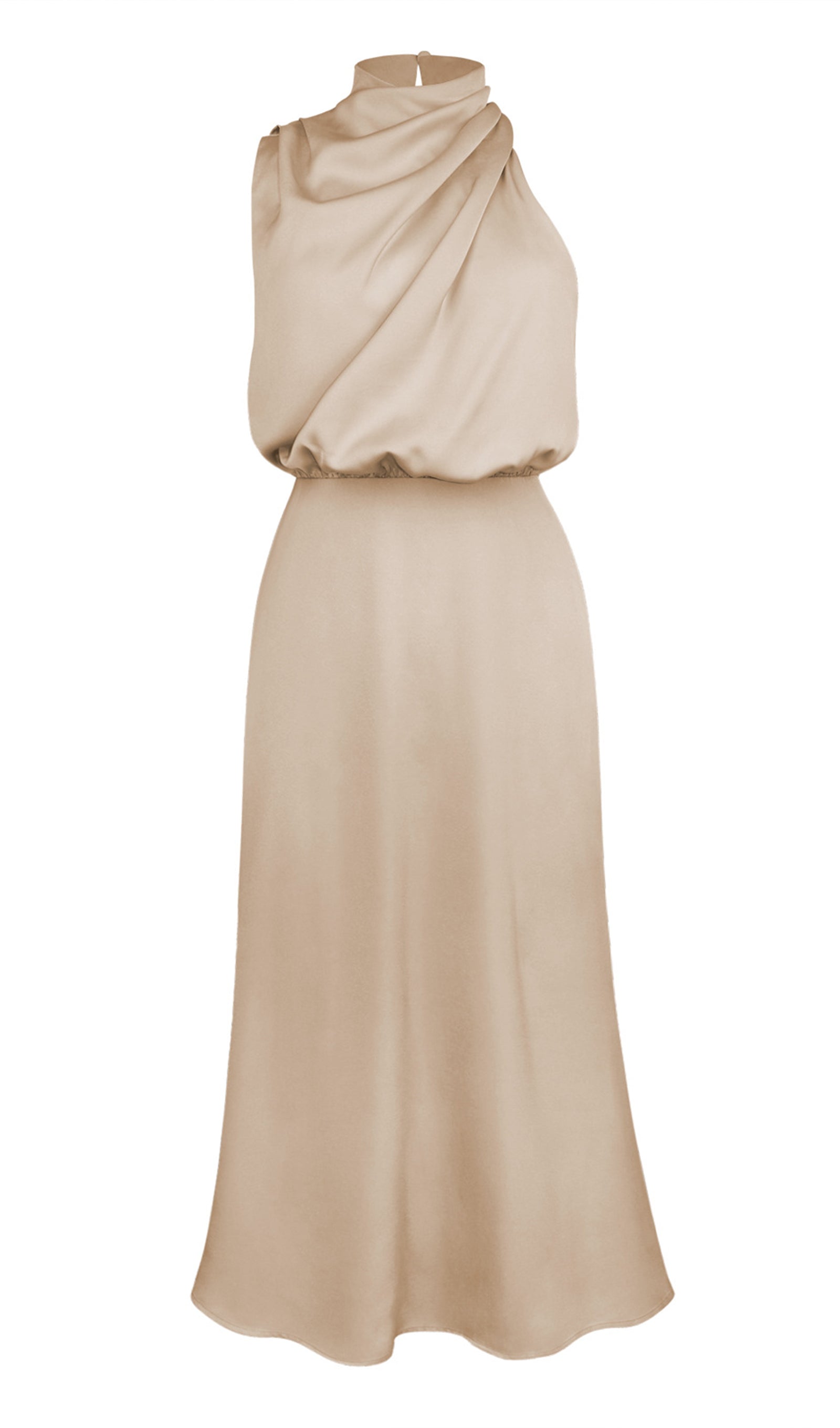 Asümmeetriline satiin midi kleit