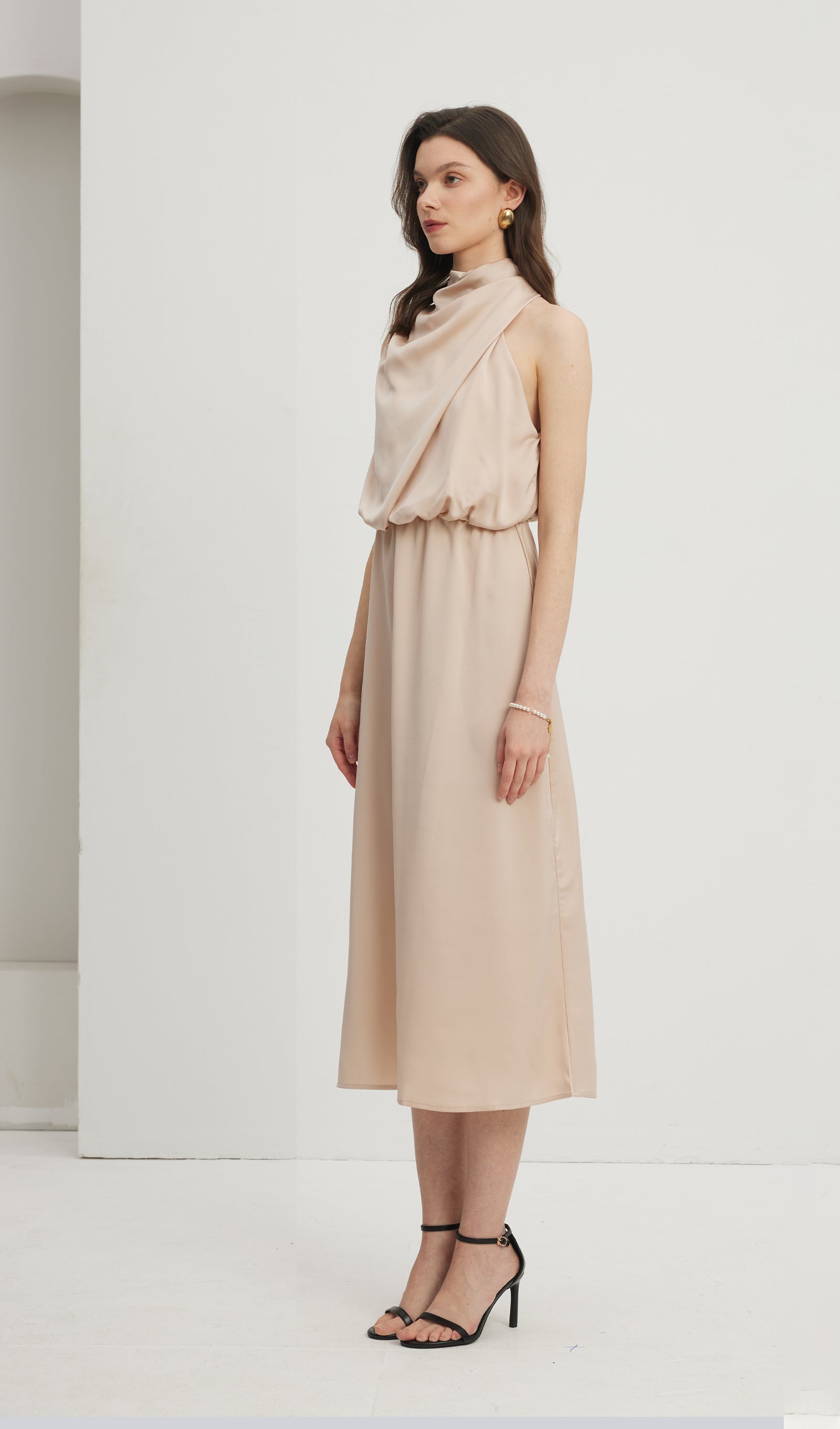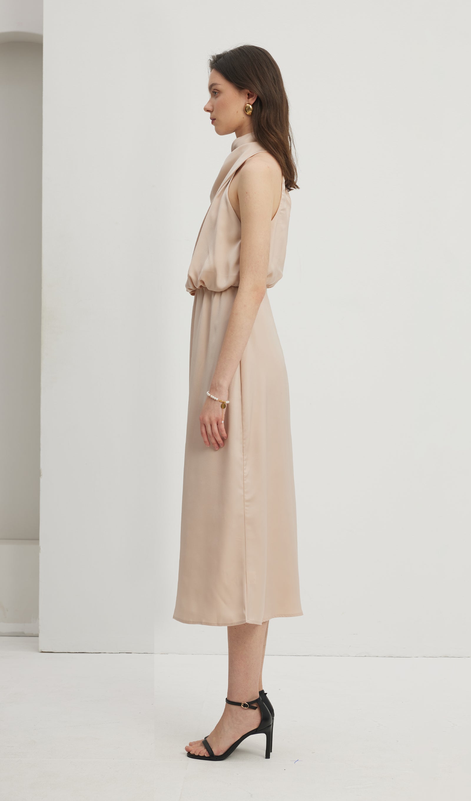 Asümmeetriline satiin midi kleit