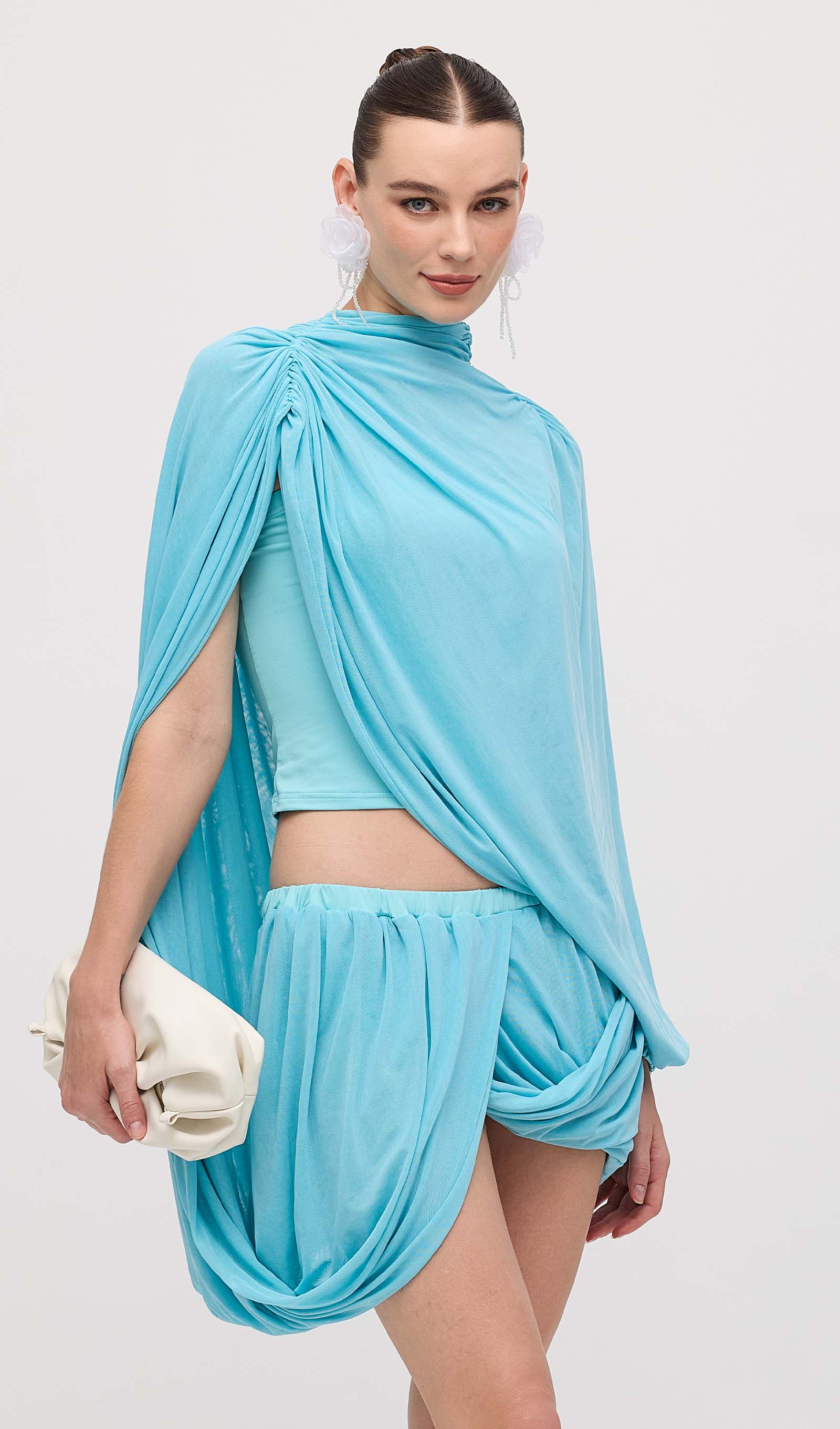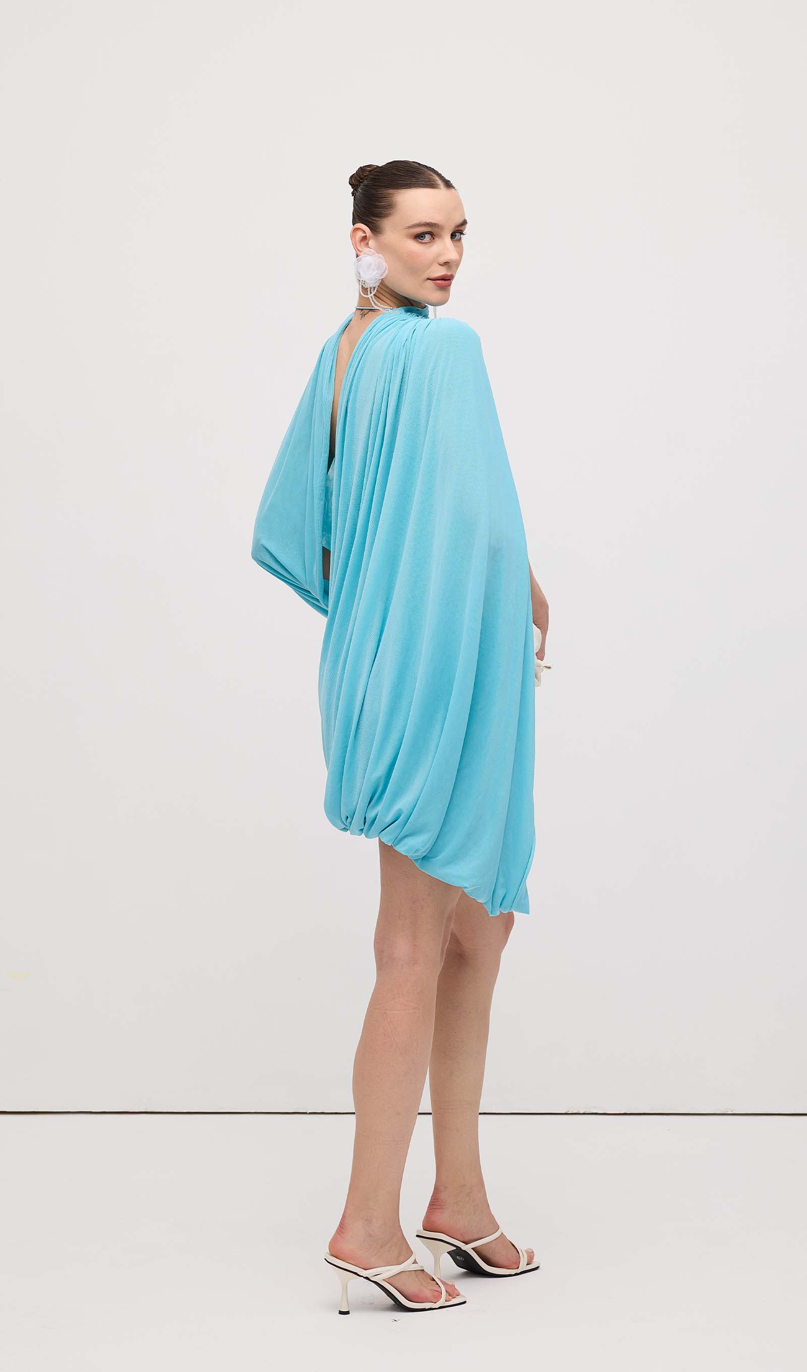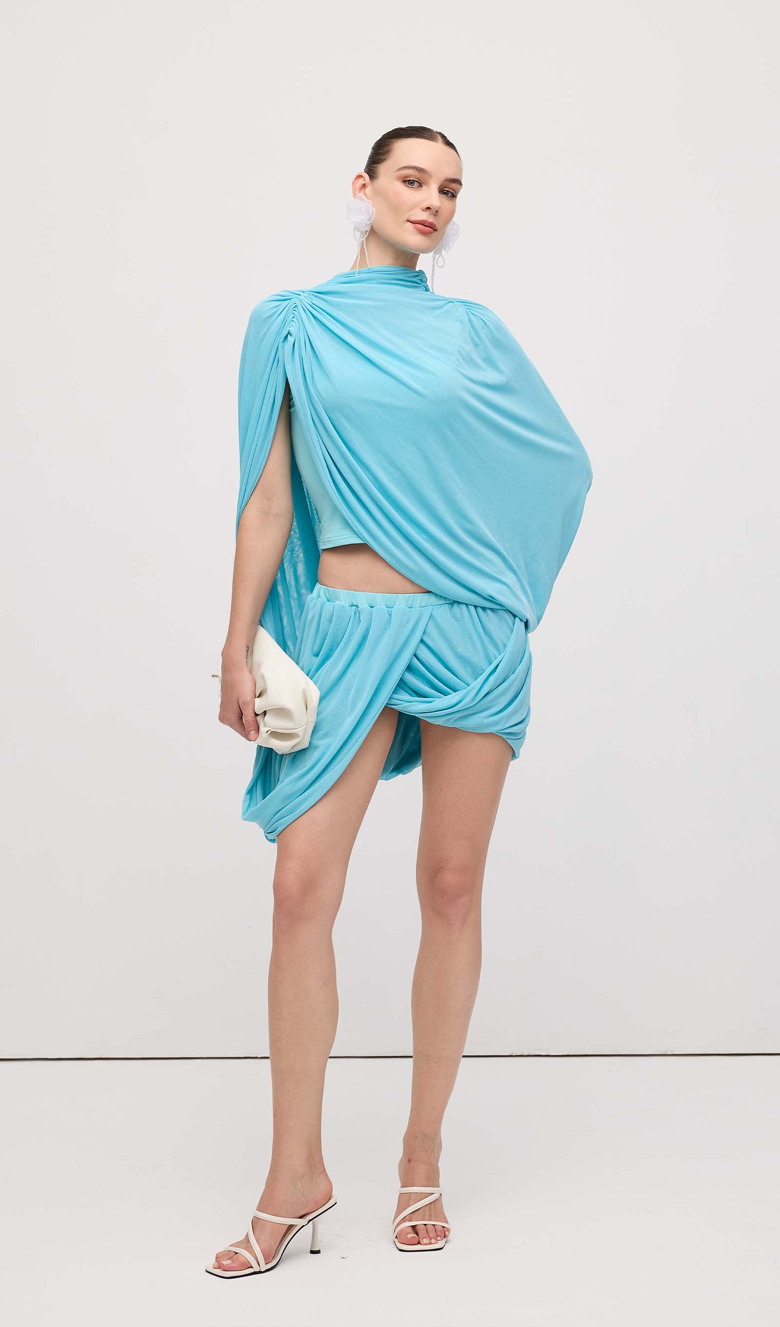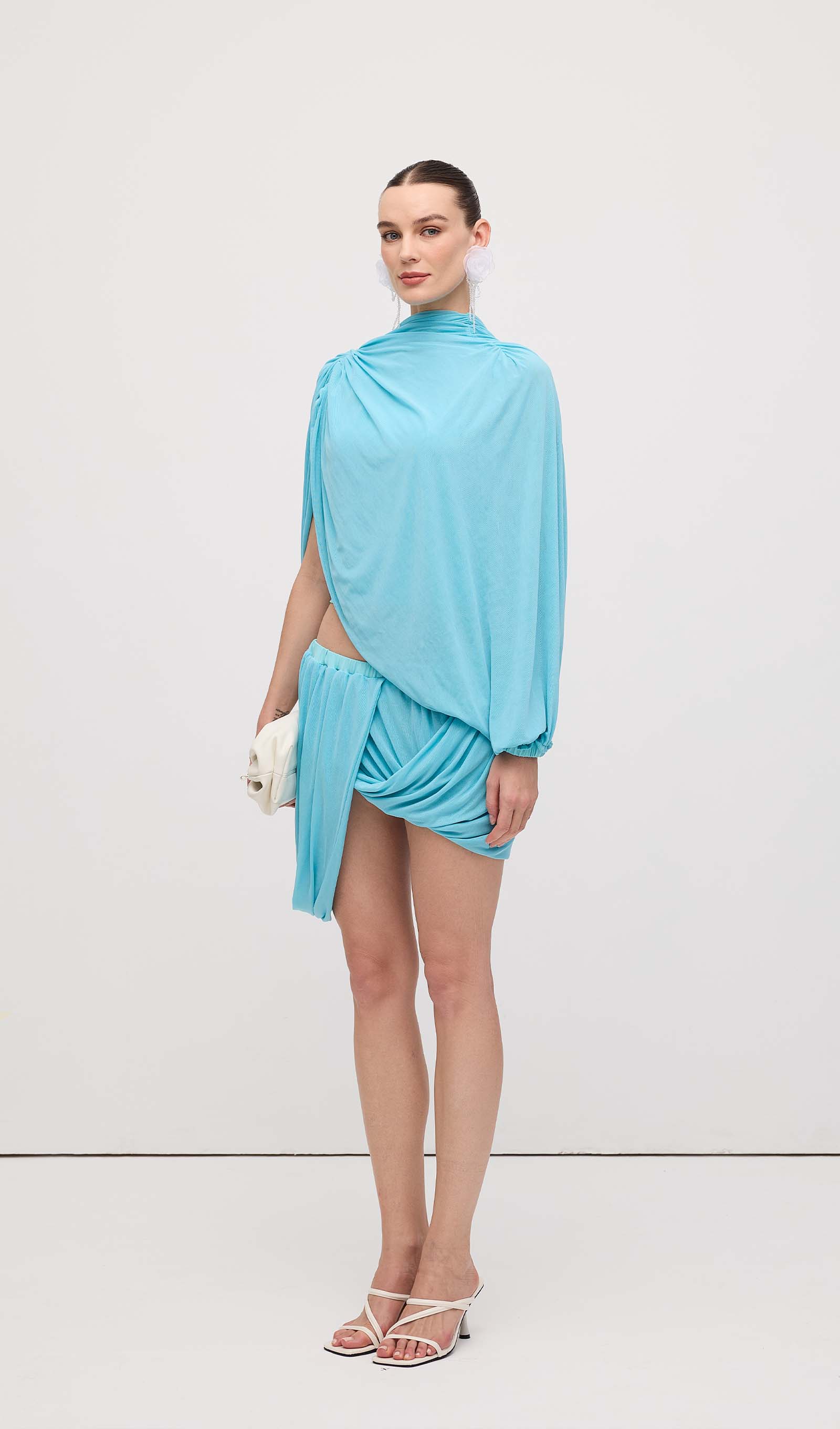 Avasta meie asümmeetriline drapeeritud mini kleit, mis on loodud, et rõhutada sinu figuuri ja lisada elegantsi igasse hetke. Unikaalne drapeering loob kauni liikumise, samas kui mini pikkus pikendab jalgu ja toob esile sinu parimad jooned.