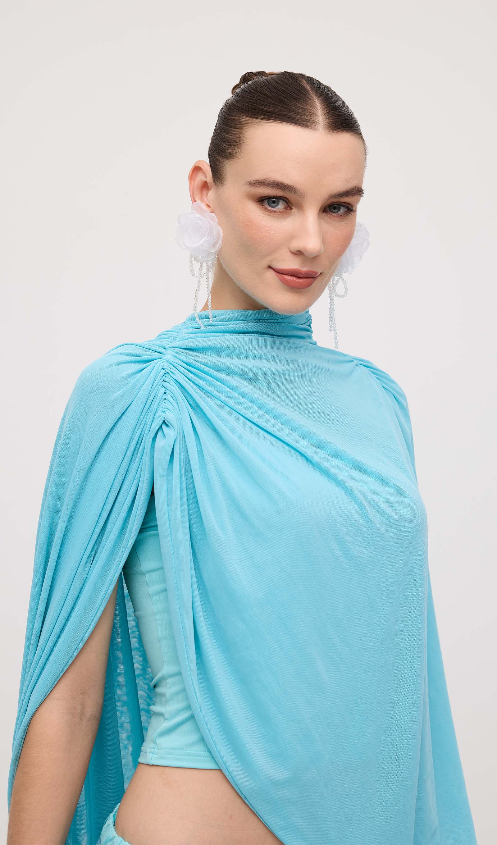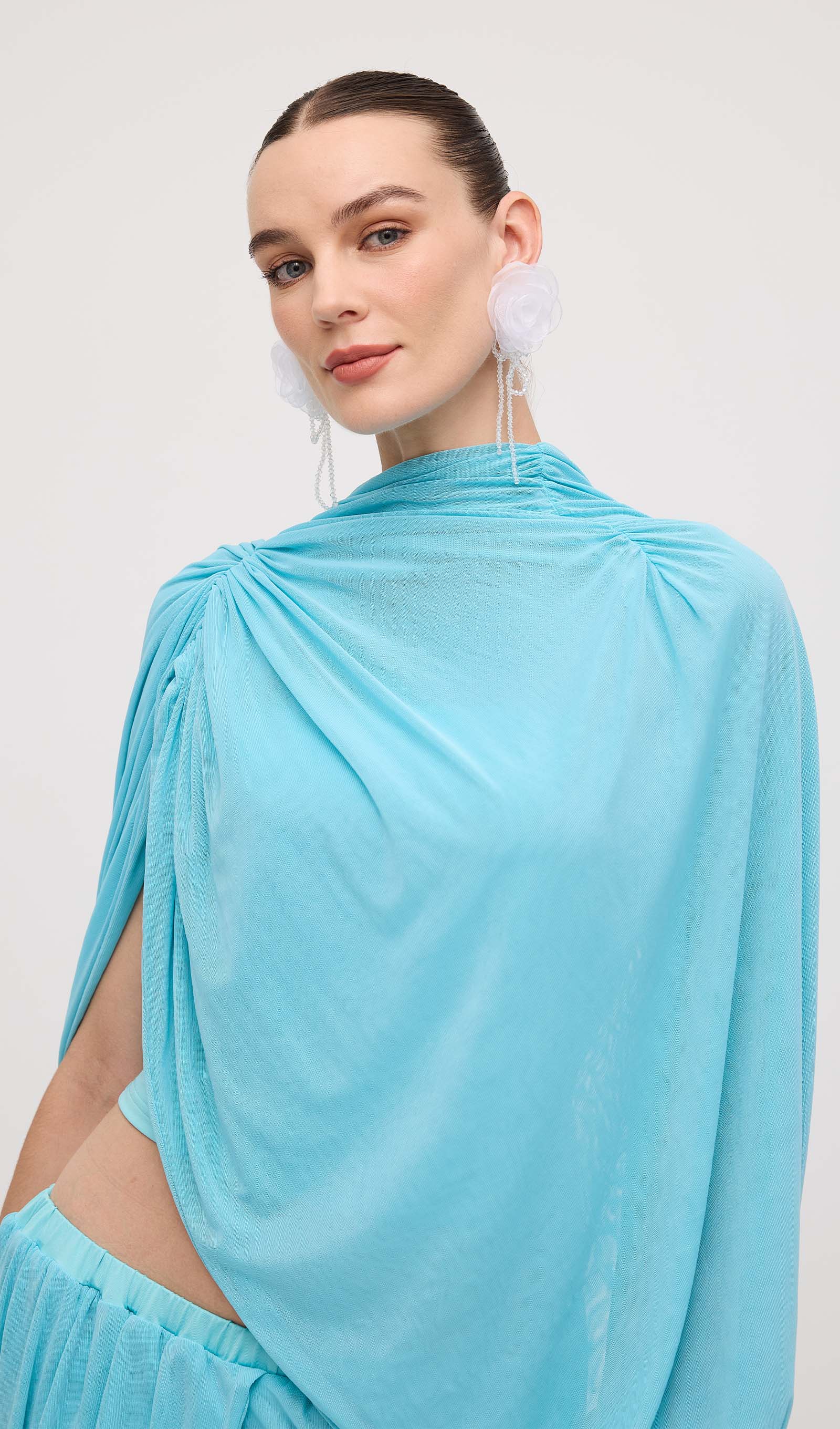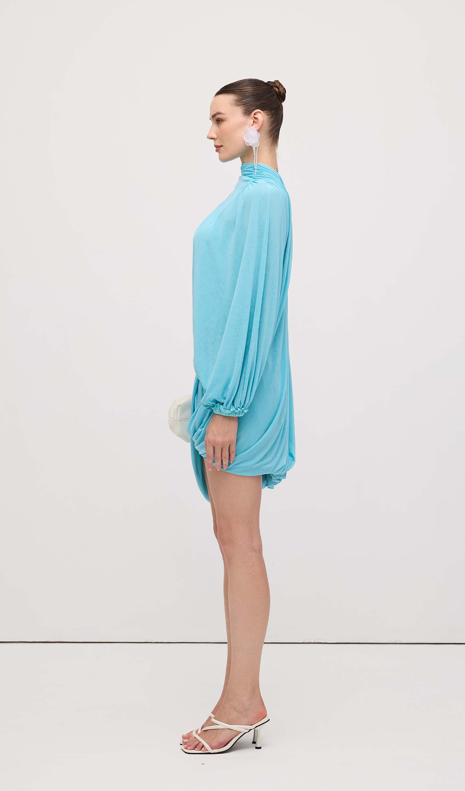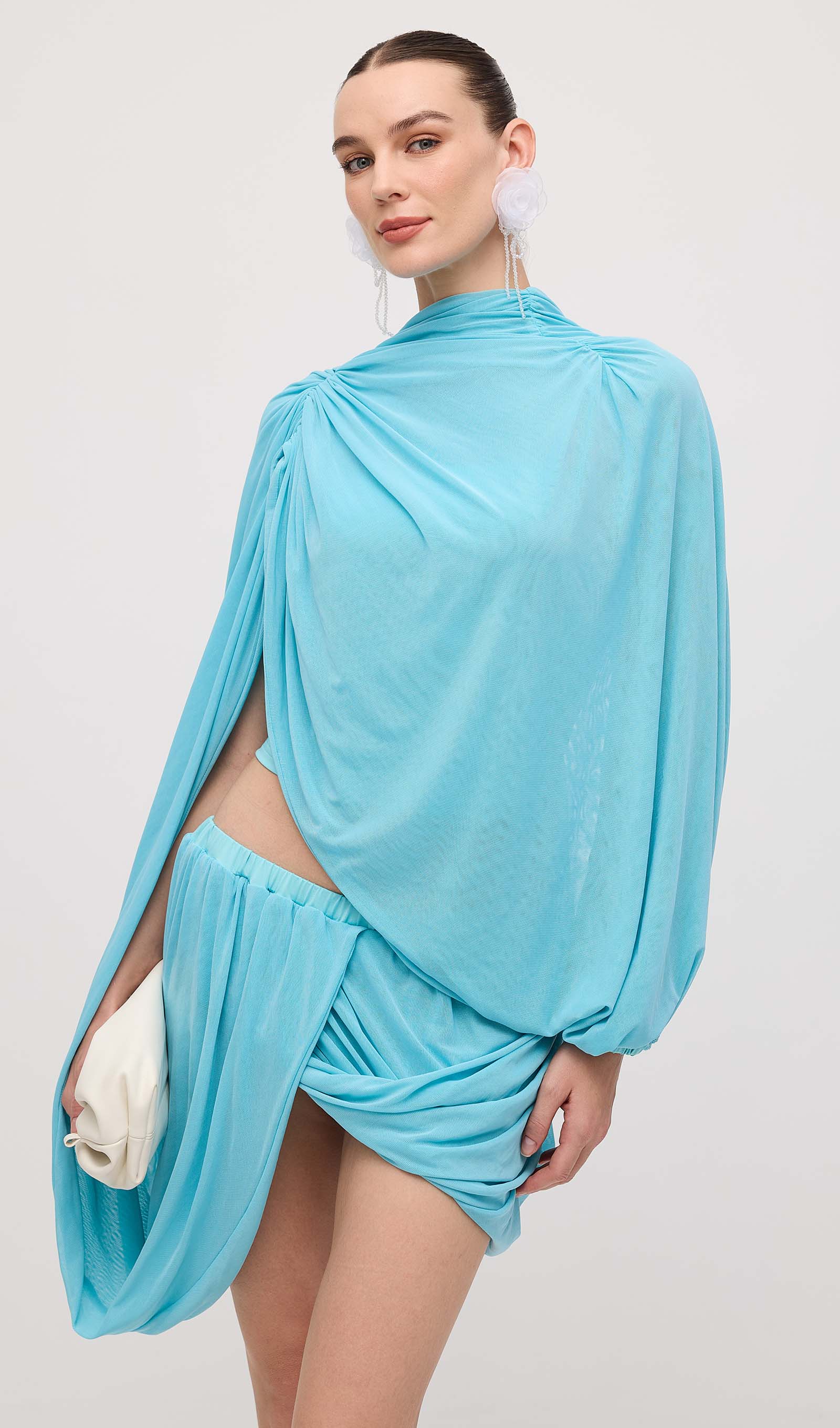 Avasta meie asümmeetriline drapeeritud mini kleit, mis on loodud, et rõhutada sinu figuuri ja lisada elegantsi igasse hetke. Unikaalne drapeering loob kauni liikumise, samas kui mini pikkus pikendab jalgu ja toob esile sinu parimad jooned.