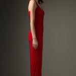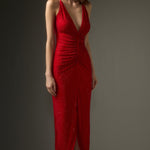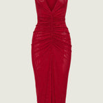 Diamante ruched midi kleit punases