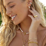 “Sleek” on saadaval kolmes kaunis variandis: 18K kollase kuldse, roosakuldse ja hõbedasena. Kombineeri seda kaelakeega, et luua täiuslik komplekt.