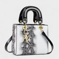 Oma keeruka loomuse ja kõrgläikega metalldetailidega on see kott rafineerituse definitsioon. Struktureeritud, kahe käepideme ja pika eemaldatava rihmaga, pakub see mitmekesisust, mis sobib formaalsetest üritustest kuni lõbusate hetkedeni stiilselt. Aksessuaar, mis tõstab kohe iga kombinatsiooni, tuues kaasa võlu ja autoriteedi.