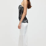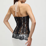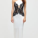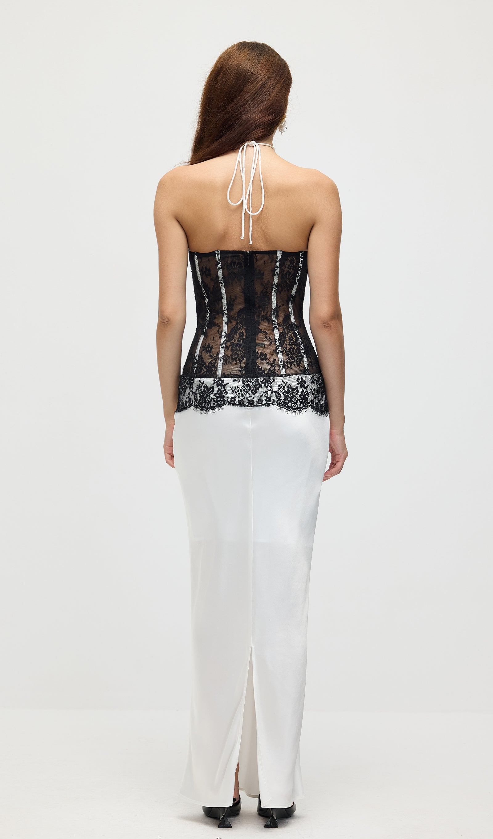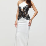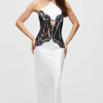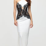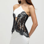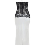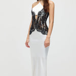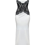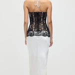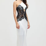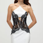 Satiinist ja pitsist korsett midi kleit valges