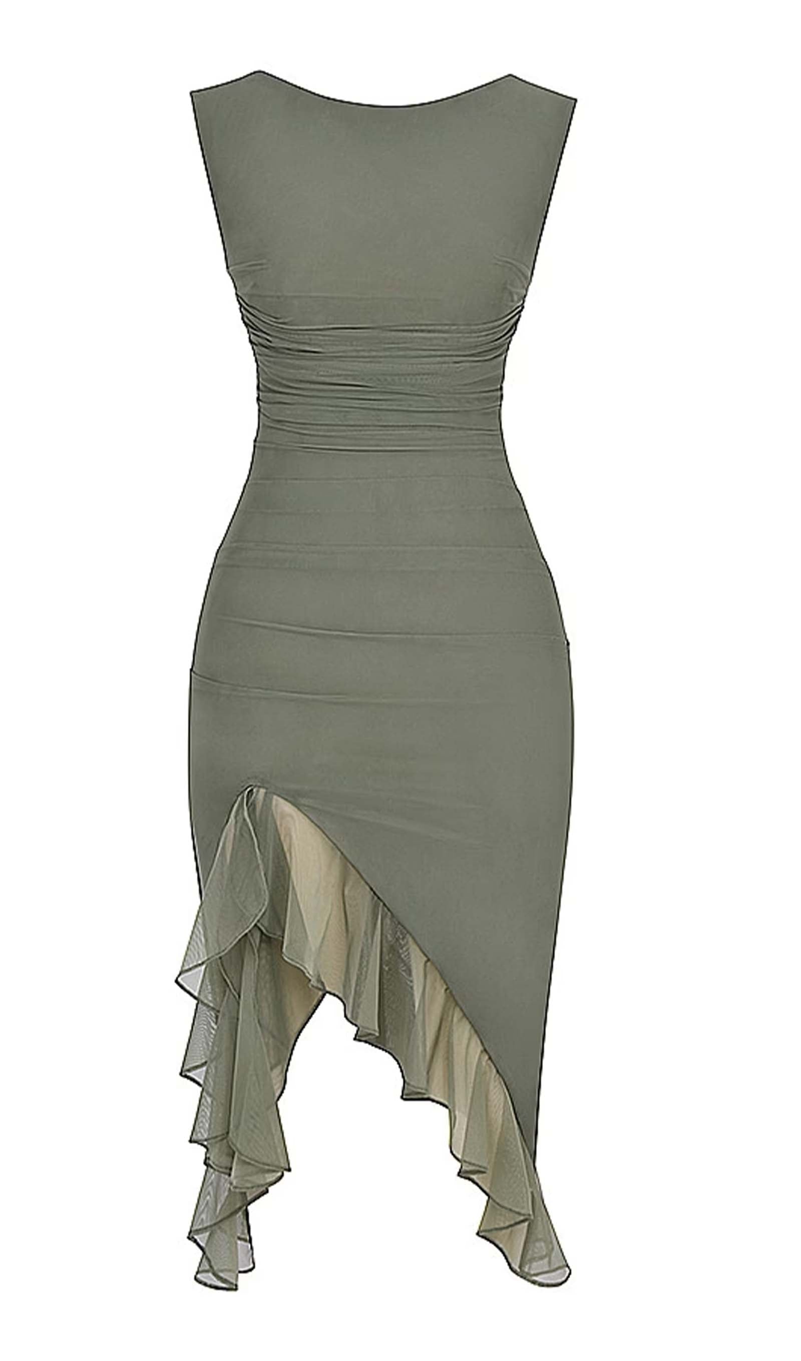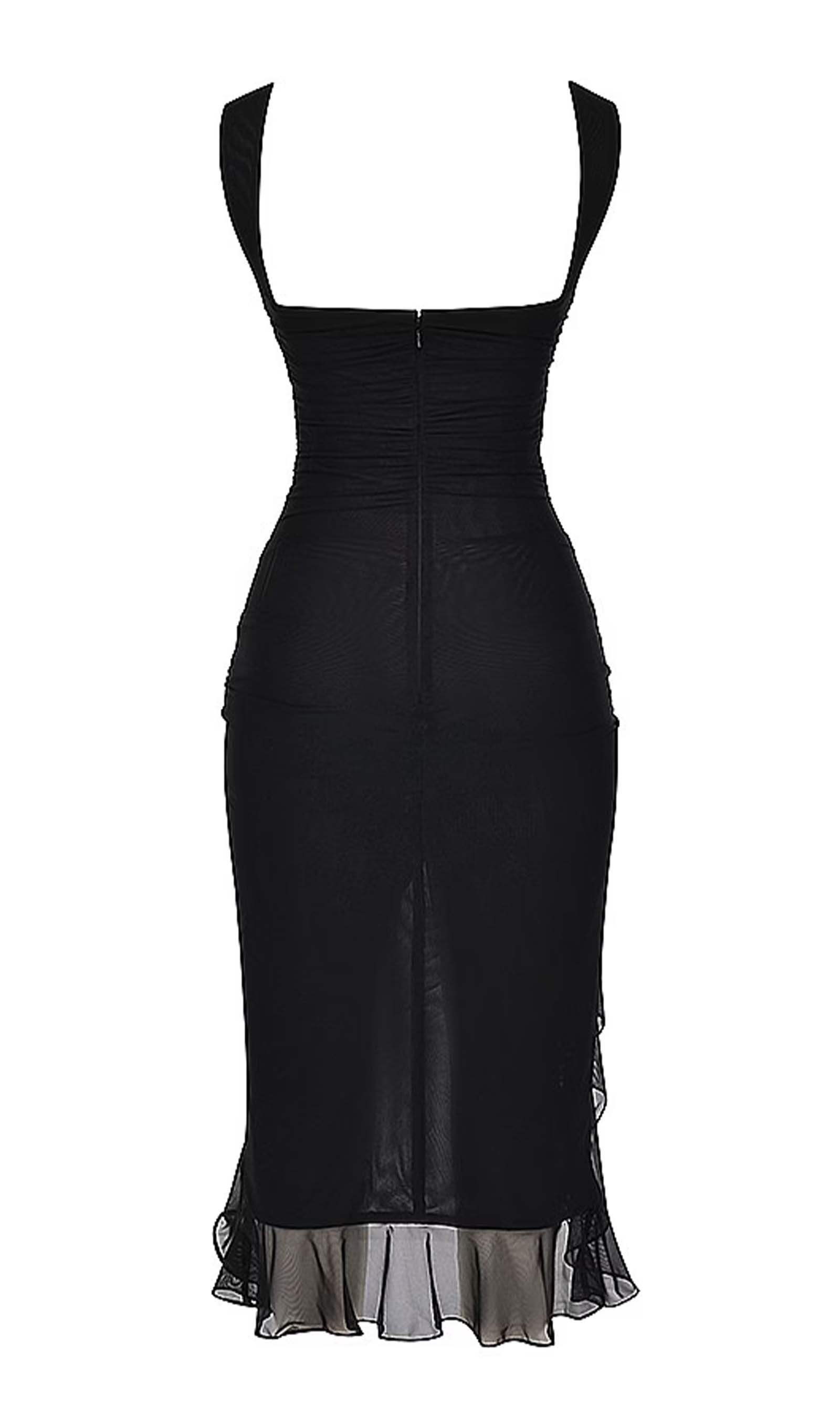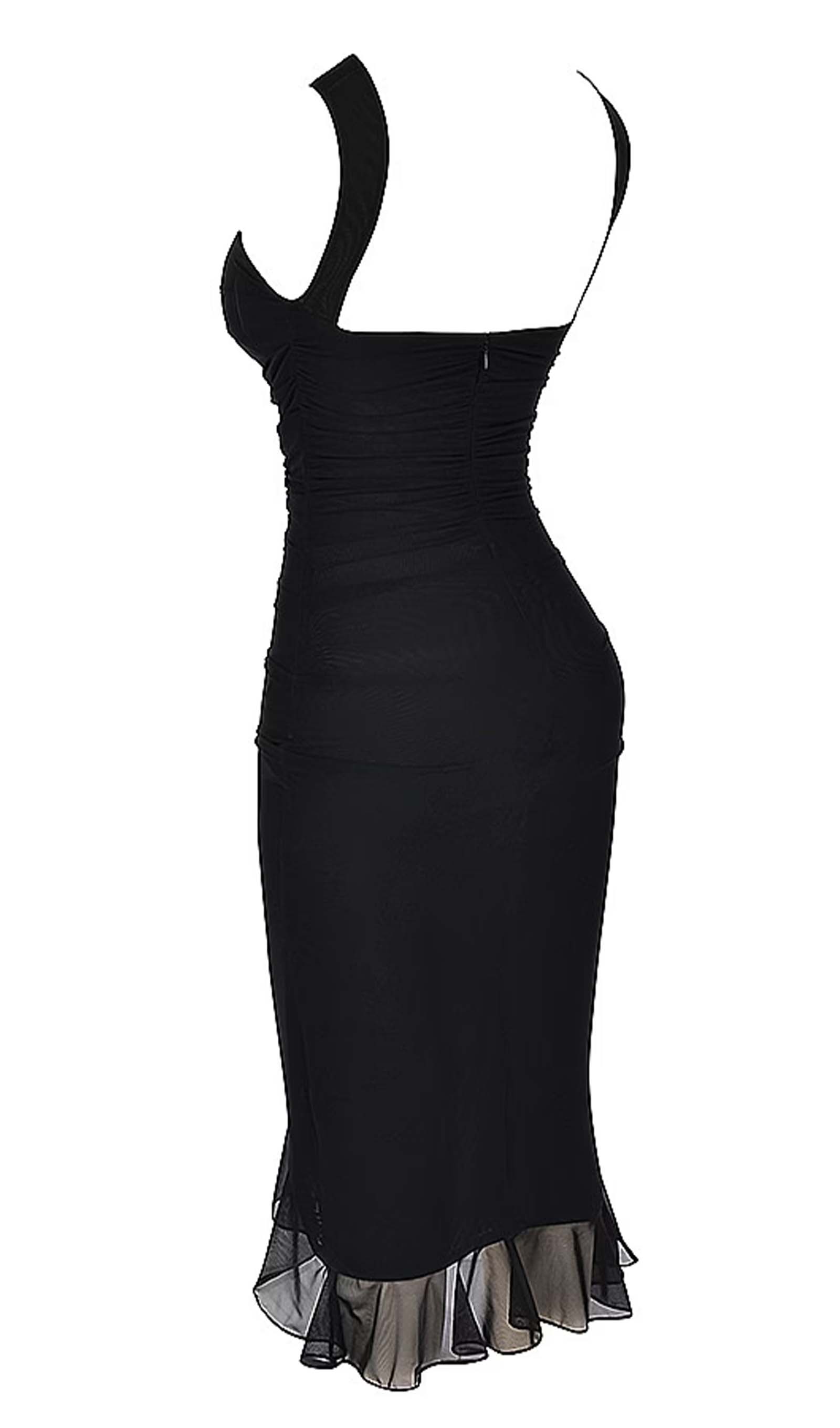 Esitleb kaunist volangiga äärt ja kõrge ümarat kaelust madala seljaga, mis toob esile sinu kehakuju.