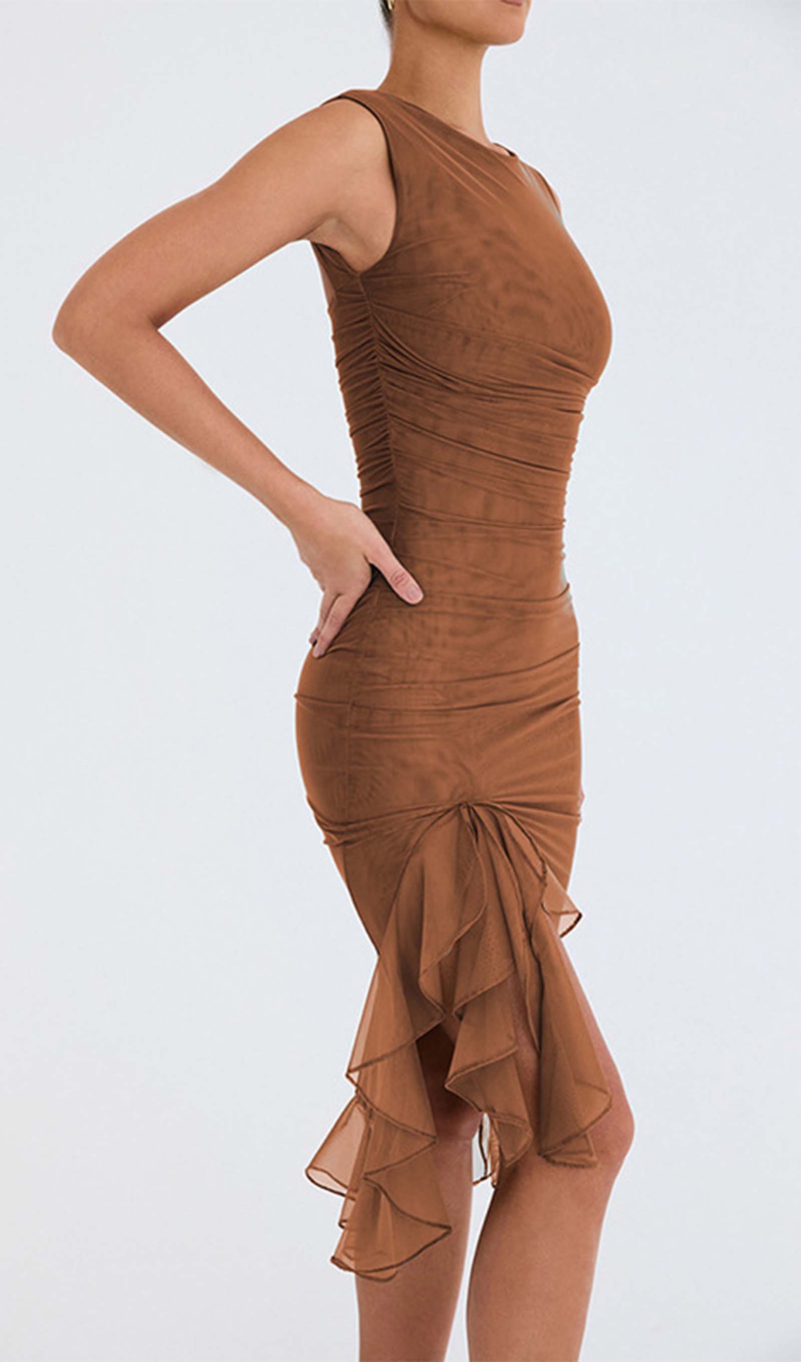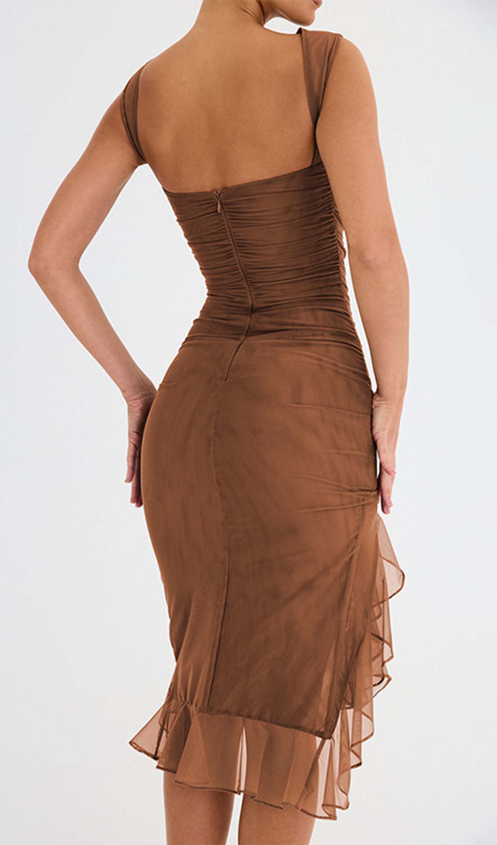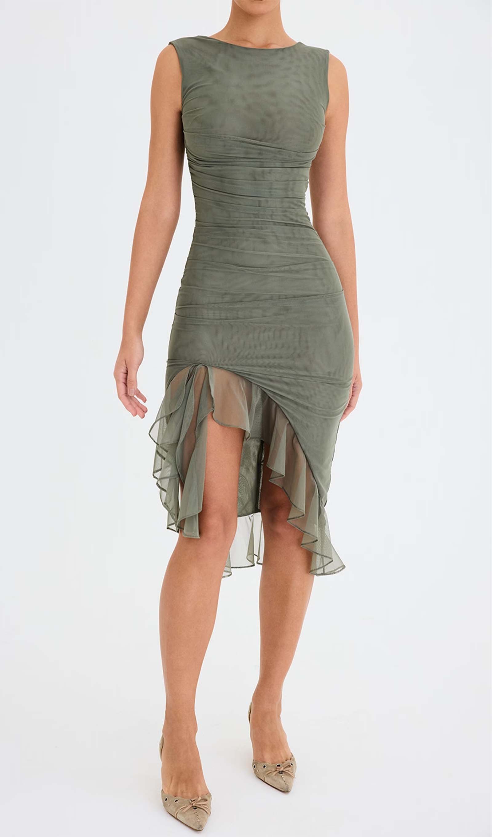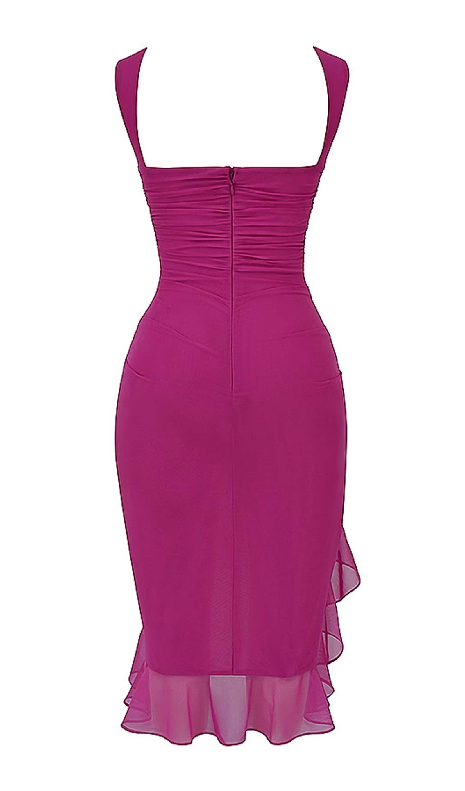 Esitleb kaunist volangiga äärt ja kõrge ümarat kaelust madala seljaga, mis toob esile sinu kehakuju.