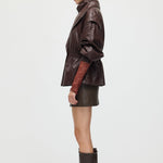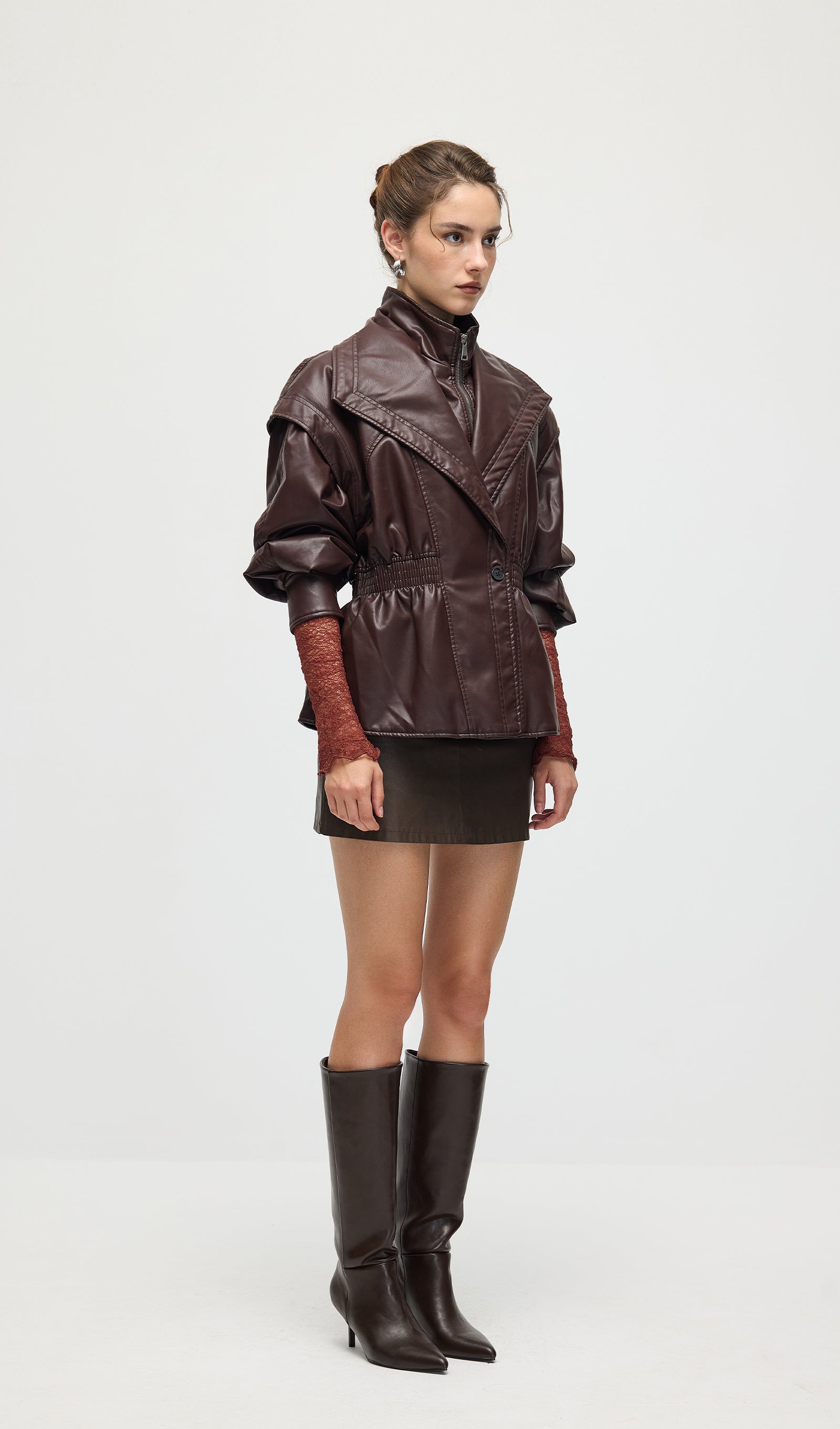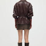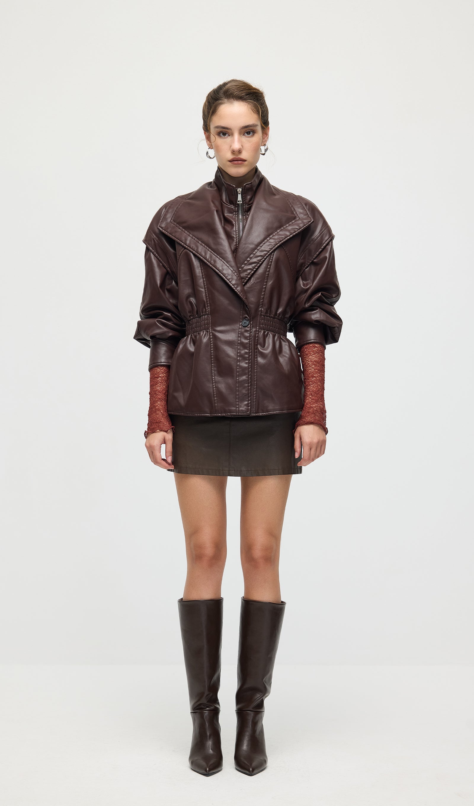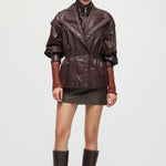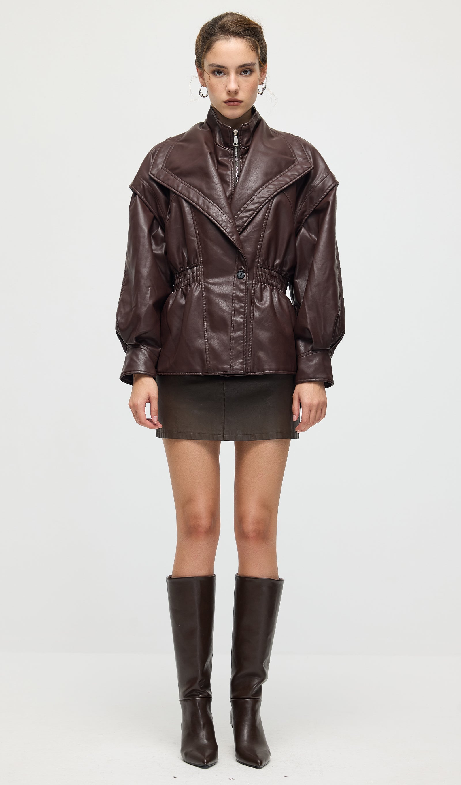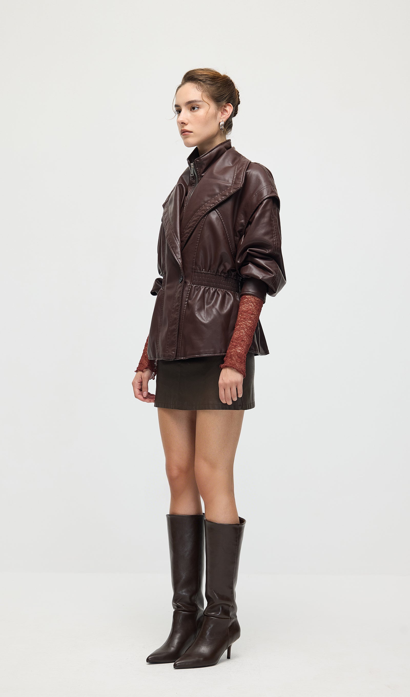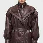 Valmistatud kvaliteetsest mustast nahast, see vöökohtadega lapel-tagi pakub sujuvat, kohandatud istuvust, mis rõhutab teie siluetti. Selle struktureeritud lapel lisab ajatu serva, samas kui kitsas vöökoht suurendab rafineeritust ja mugavust. Täiuslik nii igapäevaste kui ka ametlike välimuste tõstmiseks klassikalise ja oskusliku stiiliga.