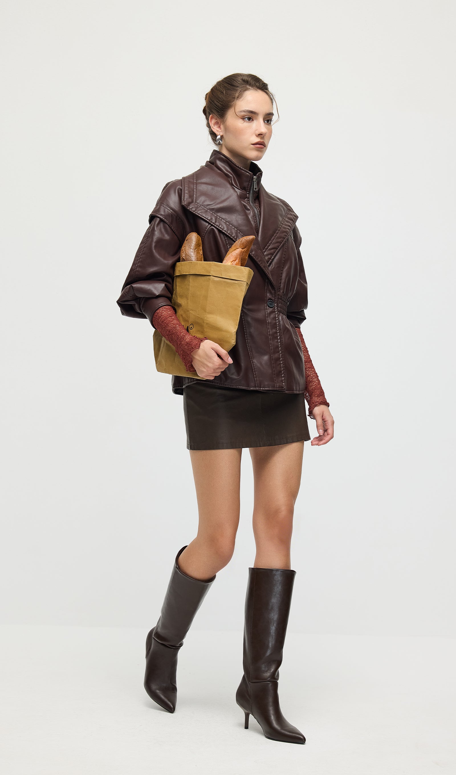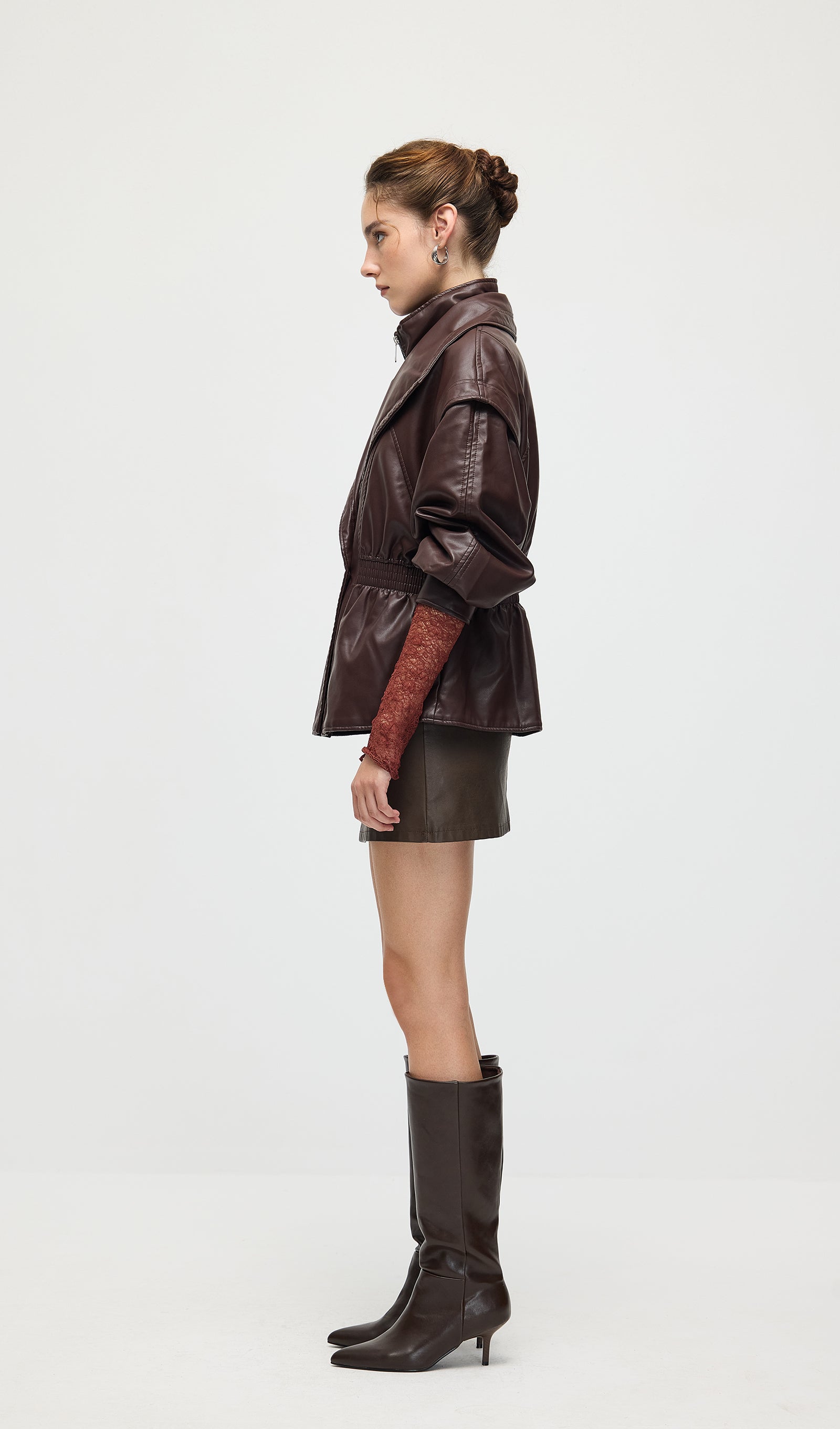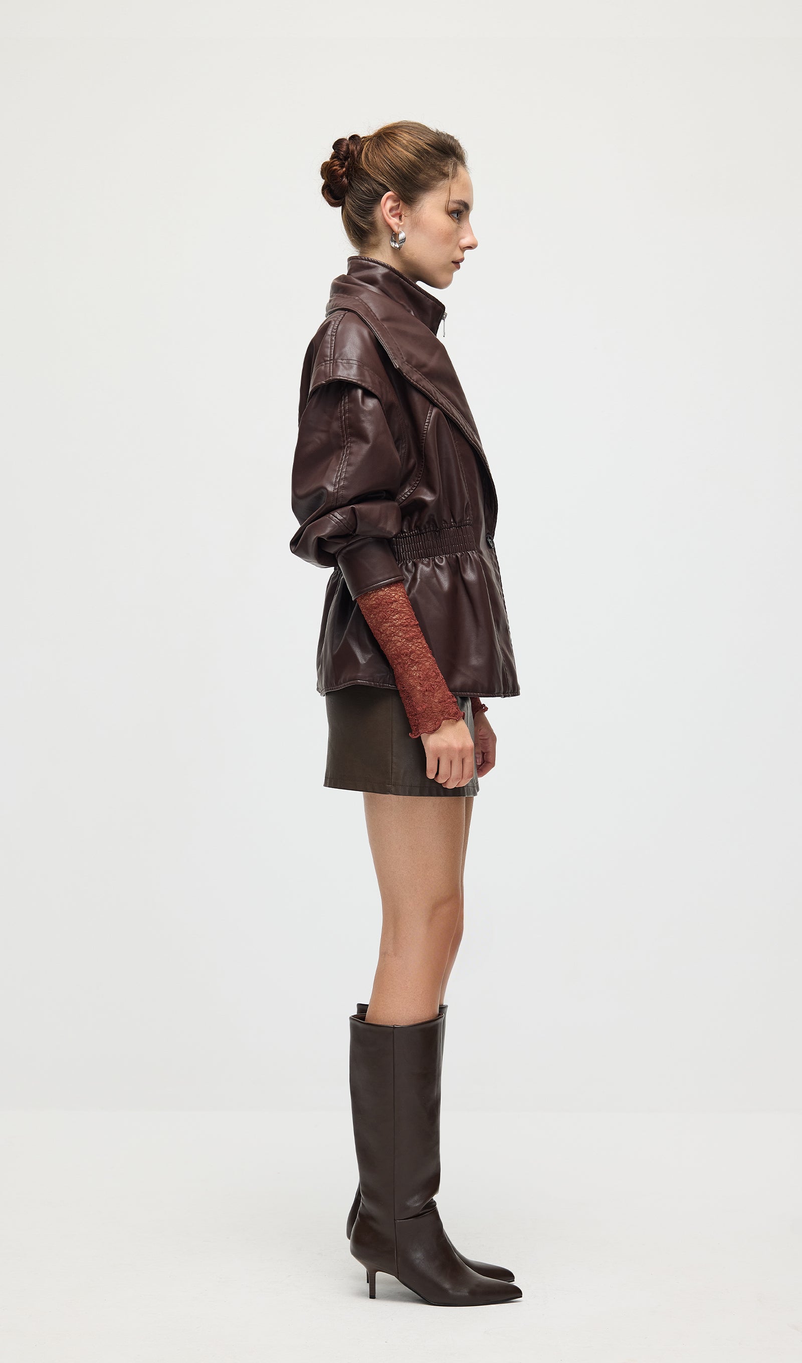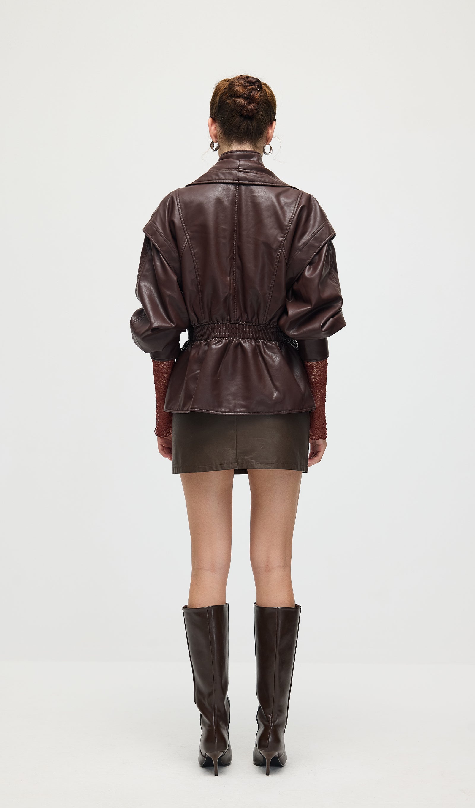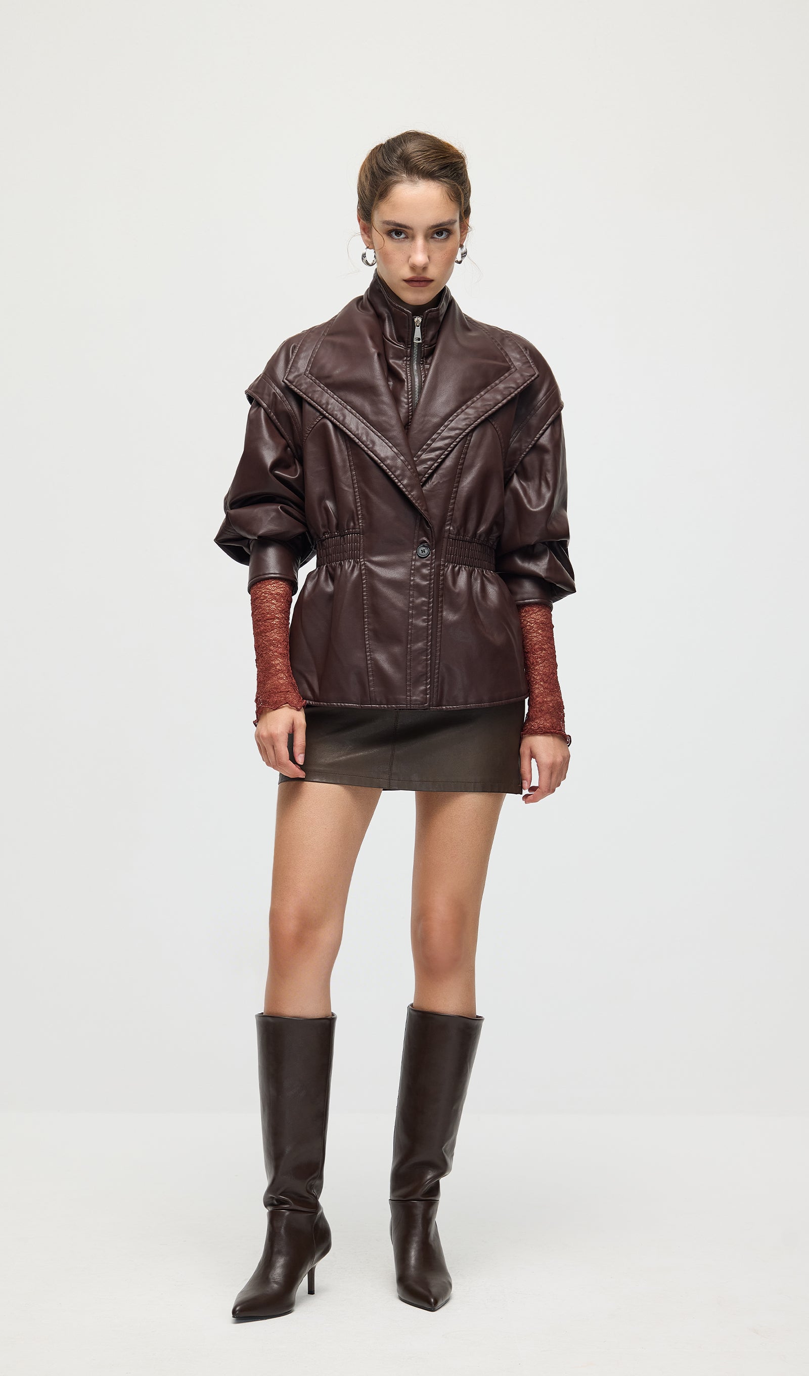 Valmistatud kvaliteetsest mustast nahast, see vöökohtadega lapel-tagi pakub sujuvat, kohandatud istuvust, mis rõhutab teie siluetti. Selle struktureeritud lapel lisab ajatu serva, samas kui kitsas vöökoht suurendab rafineeritust ja mugavust. Täiuslik nii igapäevaste kui ka ametlike välimuste tõstmiseks klassikalise ja oskusliku stiiliga.