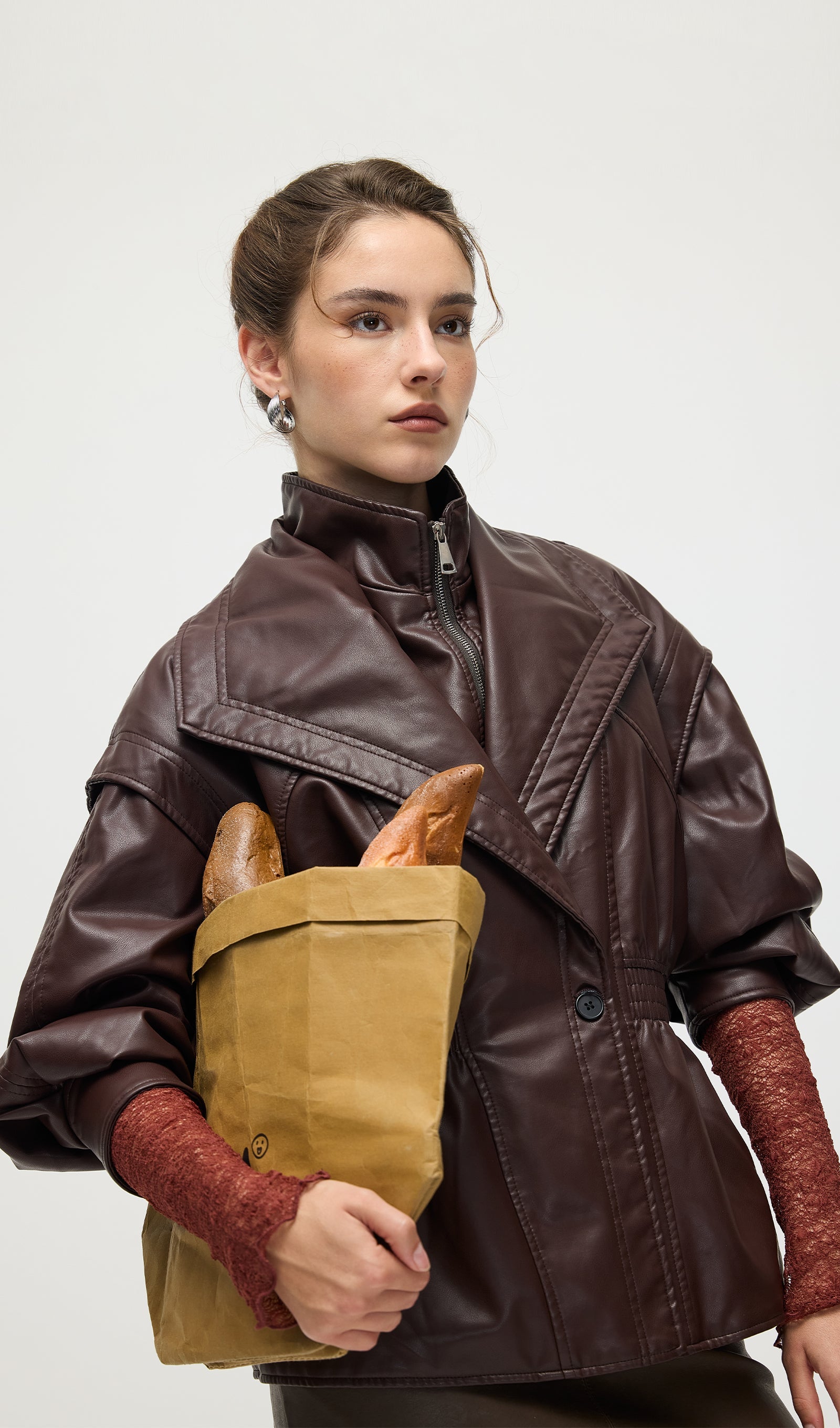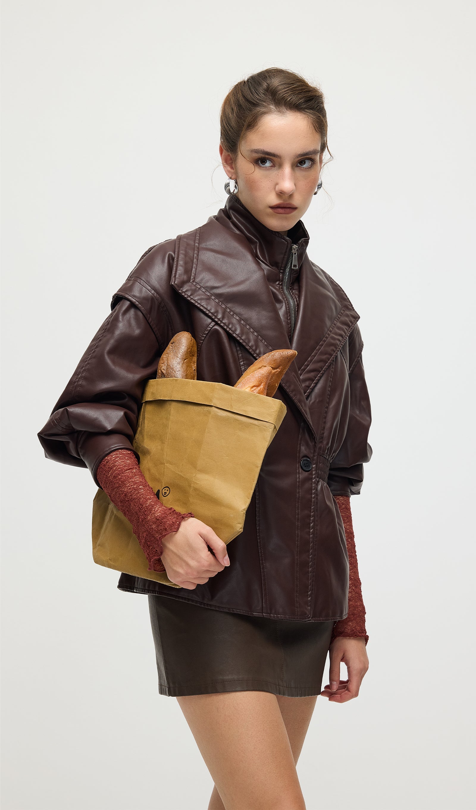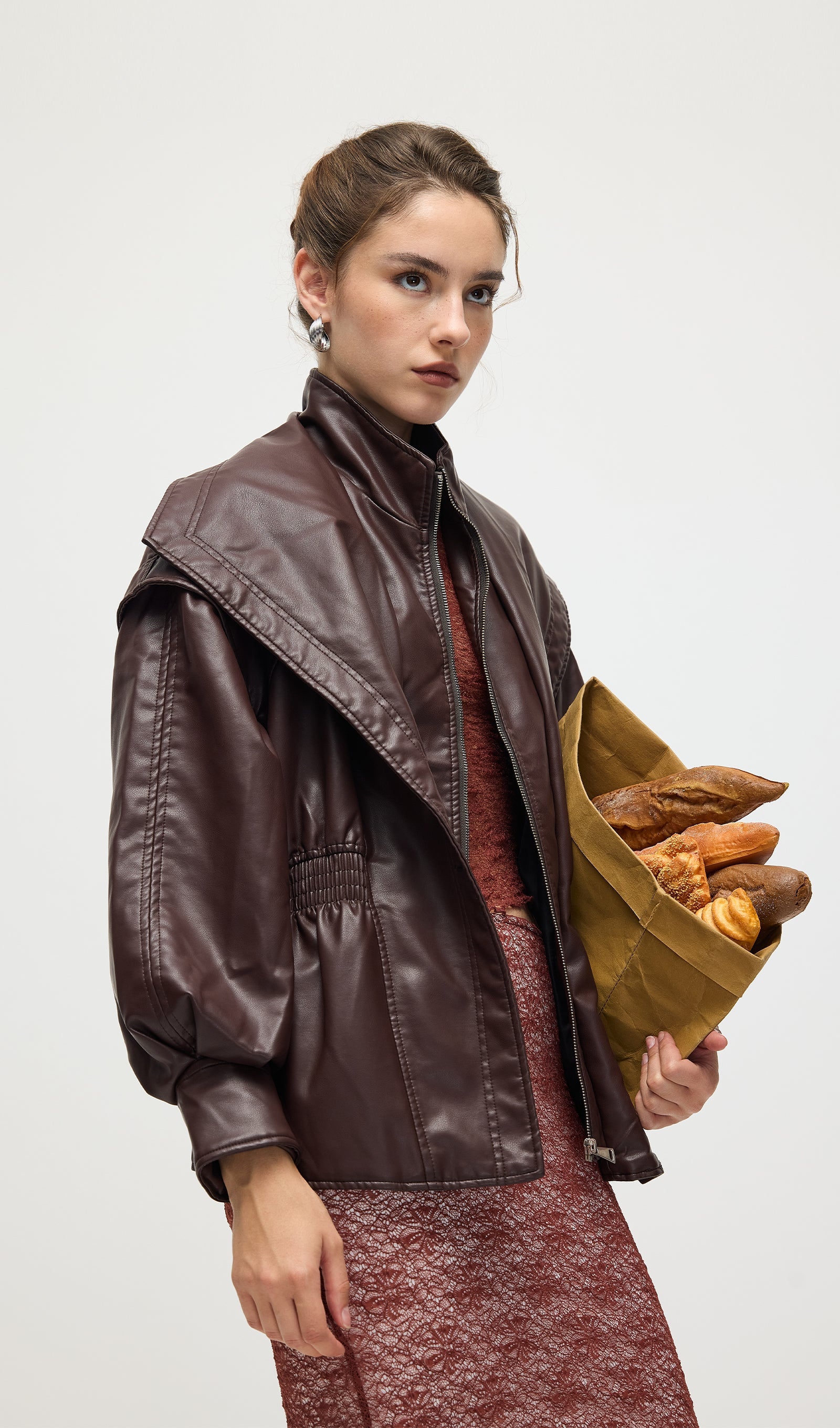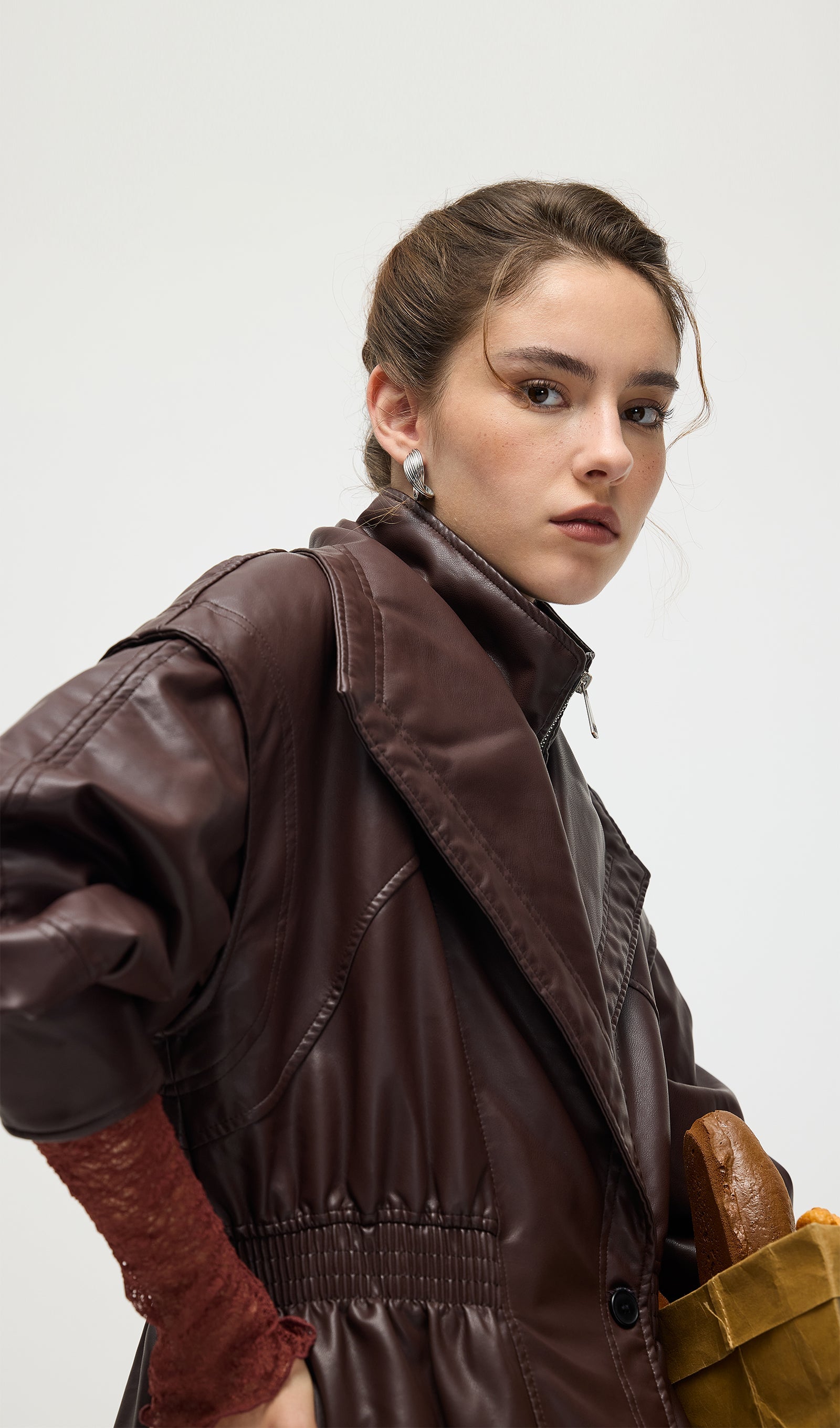 Valmistatud kvaliteetsest mustast nahast, see vöökohtadega lapel-tagi pakub sujuvat, kohandatud istuvust, mis rõhutab teie siluetti. Selle struktureeritud lapel lisab ajatu serva, samas kui kitsas vöökoht suurendab rafineeritust ja mugavust. Täiuslik nii igapäevaste kui ka ametlike välimuste tõstmiseks klassikalise ja oskusliku stiiliga.